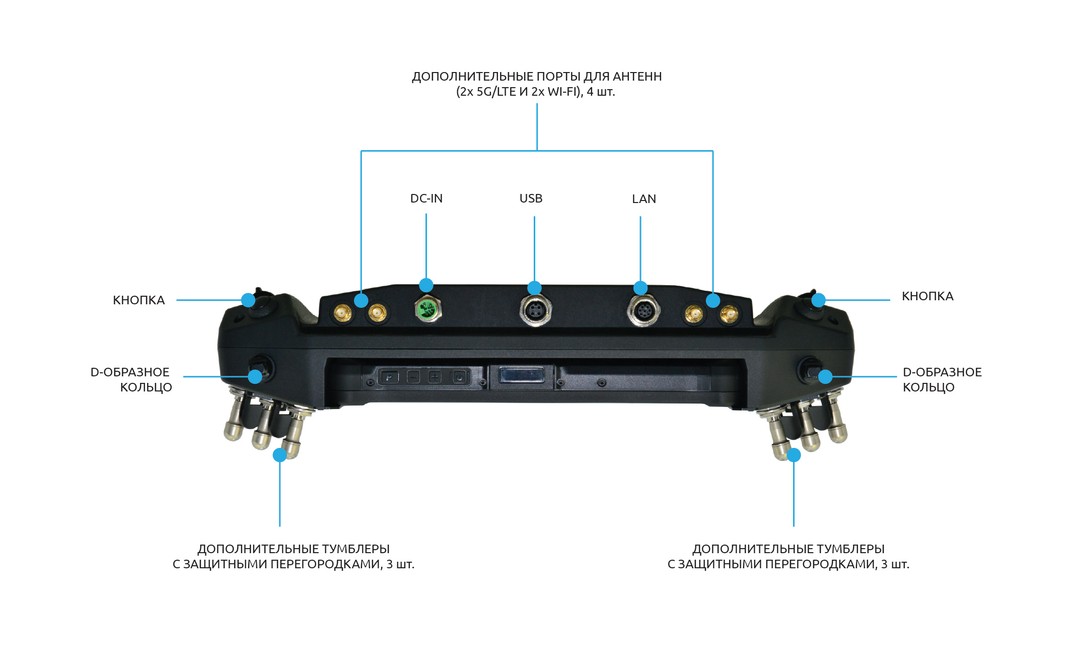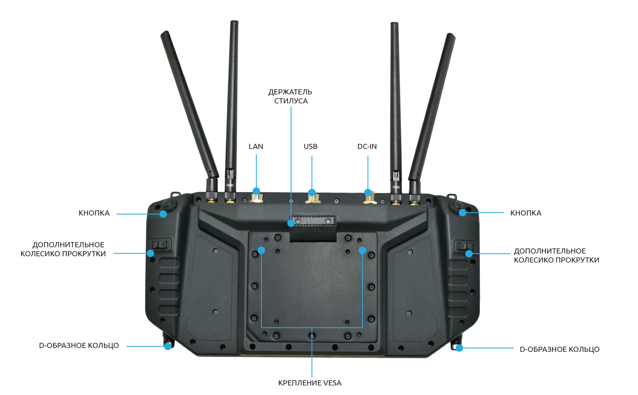 Бесперебойная и надежная связь достигается за счет интегрированной поддержки как проводной, так и беспроводной передачи данных. Контроллер оснащен портами LAN и USB военного класса M12, а также дополнительными встроенными модулями Wi-Fi 5, 4G/LTE, 5G. Возможность подключения к низкоорбитальным спутникам (LEO) предлагается в качестве резервной функции. Широкополосная антенная система поддерживает частоты от 600 до 7125 МГц, обеспечивая совместимость как с коммерческими, так и с частными радиомодулями для бесперебойной передачи данных.