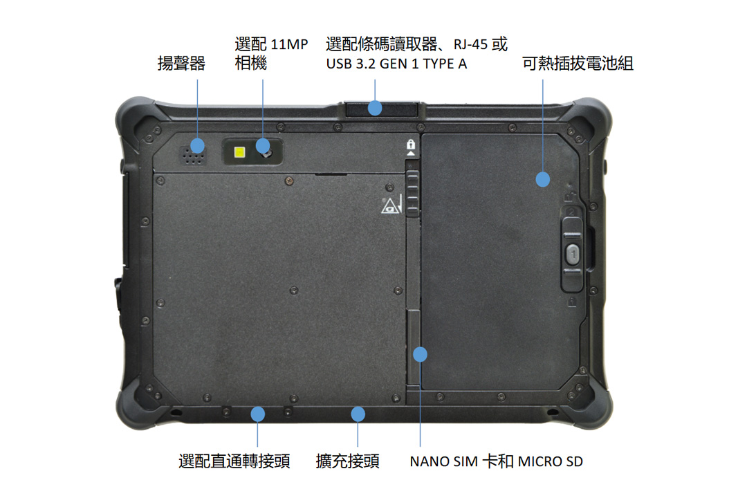 | 鎂合金機架 埠蓋 陽光下可讀螢幕 電池交換技術 (可選 ) |